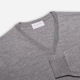 Refined sweater with a timeless design and a fitted, modern fit. Crafted in Umbria, Italy from 2/48 extra fine Cashwool® Merino Wool by Zegna Baruffa Lane Borgosesia, knitted in a 27 Gauge and fully hand-linked. The combination of yarn and gauge lends the garment a smooth, soft hand and ensures it wears well, looks sharp and holds its shape in time. Features a 'punta calata' fully-fashioned V-neck, which has an ever so slightly lower opening than is typical in sweaters nowadays, which flatters the wearer and works better with jackets.
