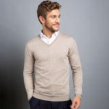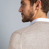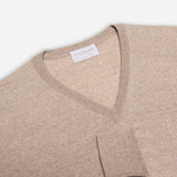 Refined sweater with a timeless design and a fitted, modern fit. Crafted in Umbria, Italy from 2/48 extra fine Cashwool® Merino Wool by Zegna Baruffa Lane Borgosesia, knitted in a 27 Gauge and fully hand-linked. The combination of yarn and gauge lends the garment a smooth, soft hand and ensures it wears well, looks sharp and holds its shape in time. Features a 'punta calata' fully-fashioned V-neck, which has an ever so slightly lower opening than is typical in sweaters nowadays, which flatters the wearer and works better with jackets.